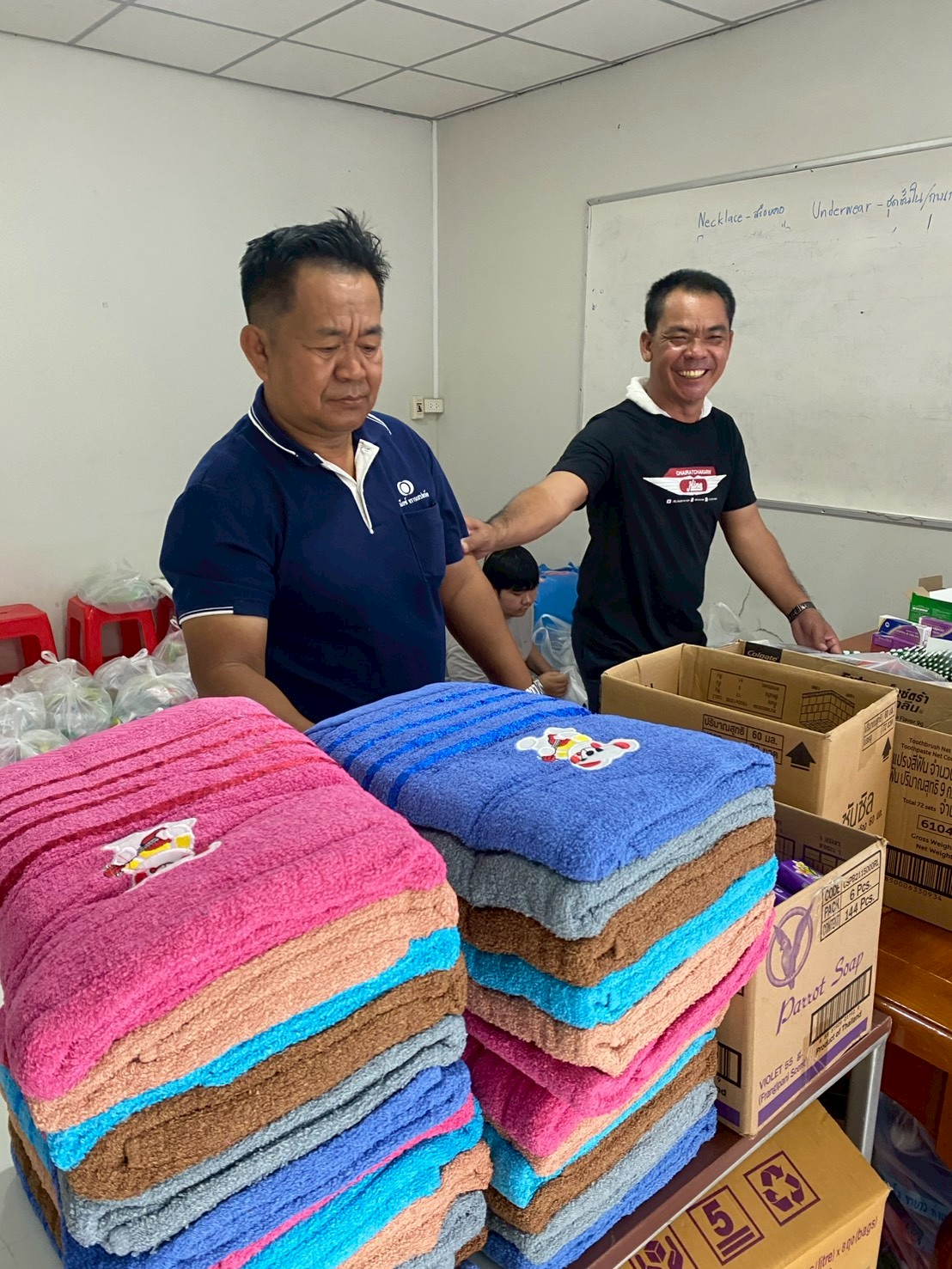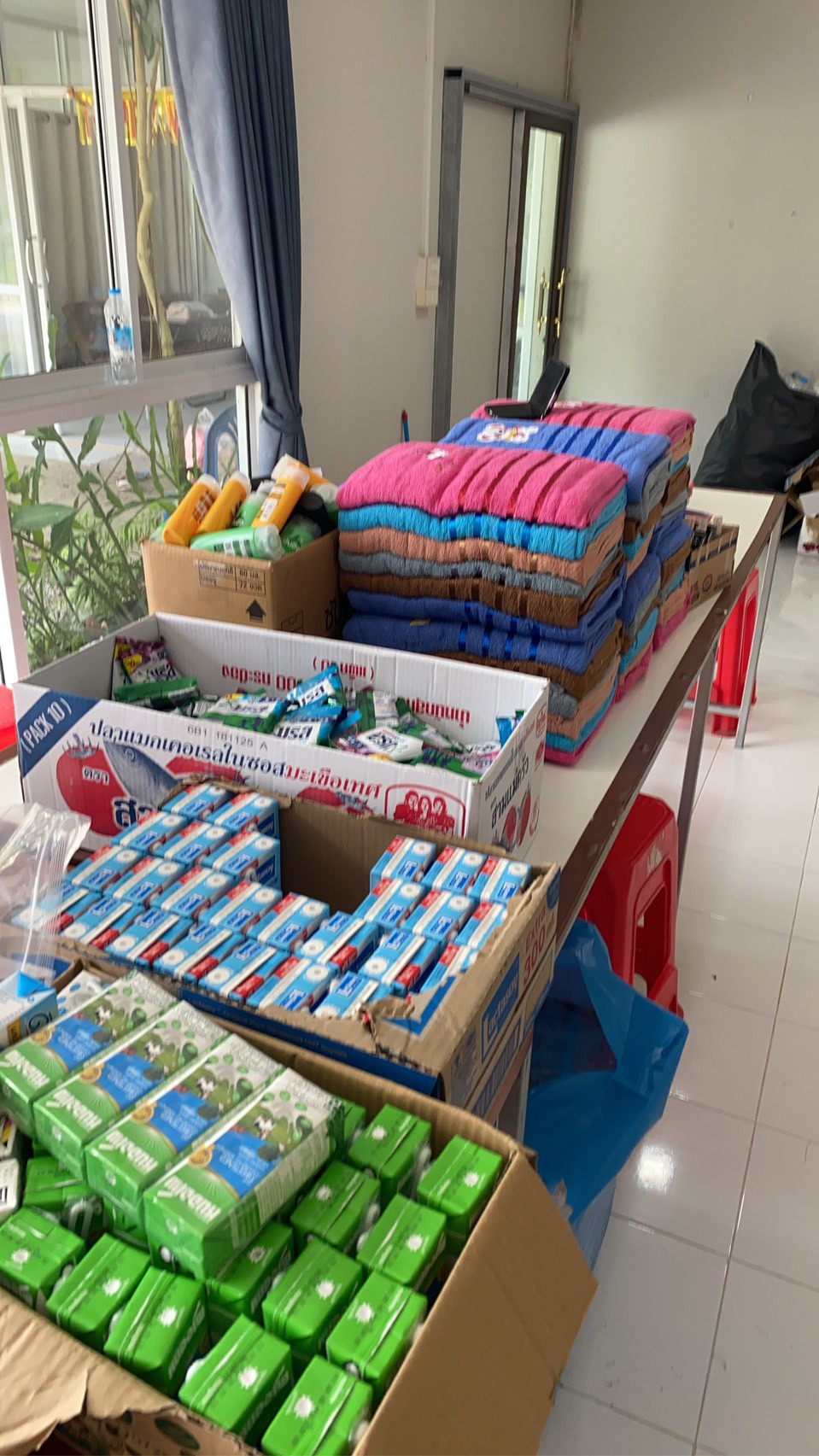 - ถุงยังชีพรวมกว่า 1,085 ชุด พร้อมเสื้อผ้า รองเท้า ผ้าเช็ดตัว และของใช้จำเป็น
